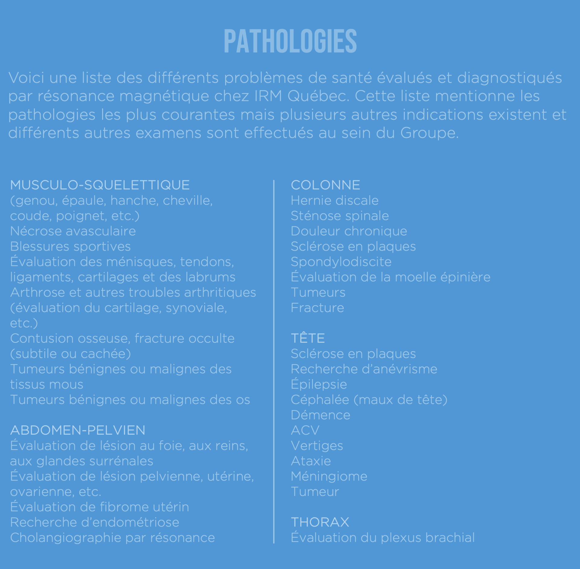 Le Groupe IRM Québec offre plus de 40 types d’examens.